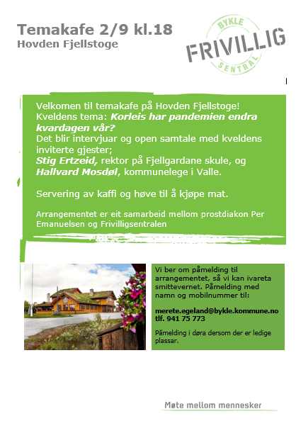 Aud Standal Skagestad (tlf. 90070995) er representant for soknerådet og kyrkjelyden i diakonisamarbeidet for Setesdal.